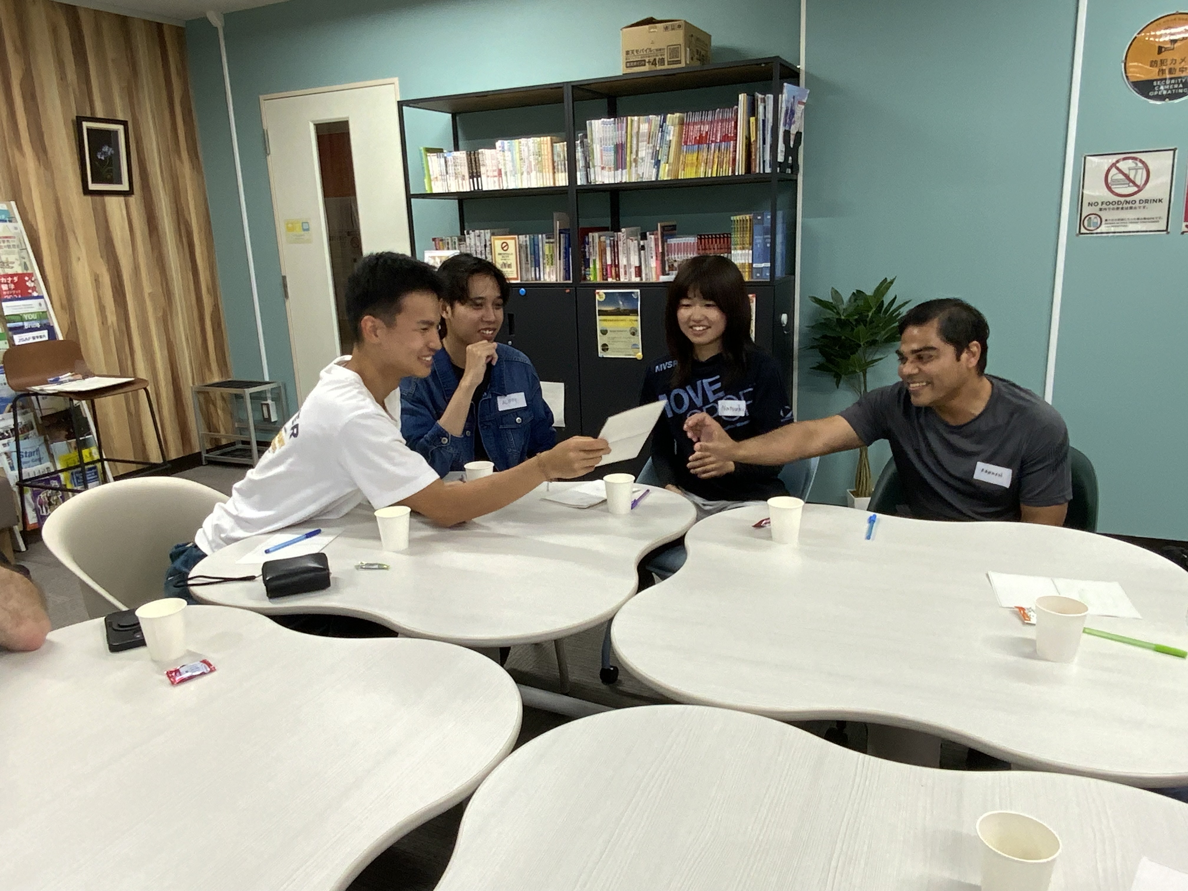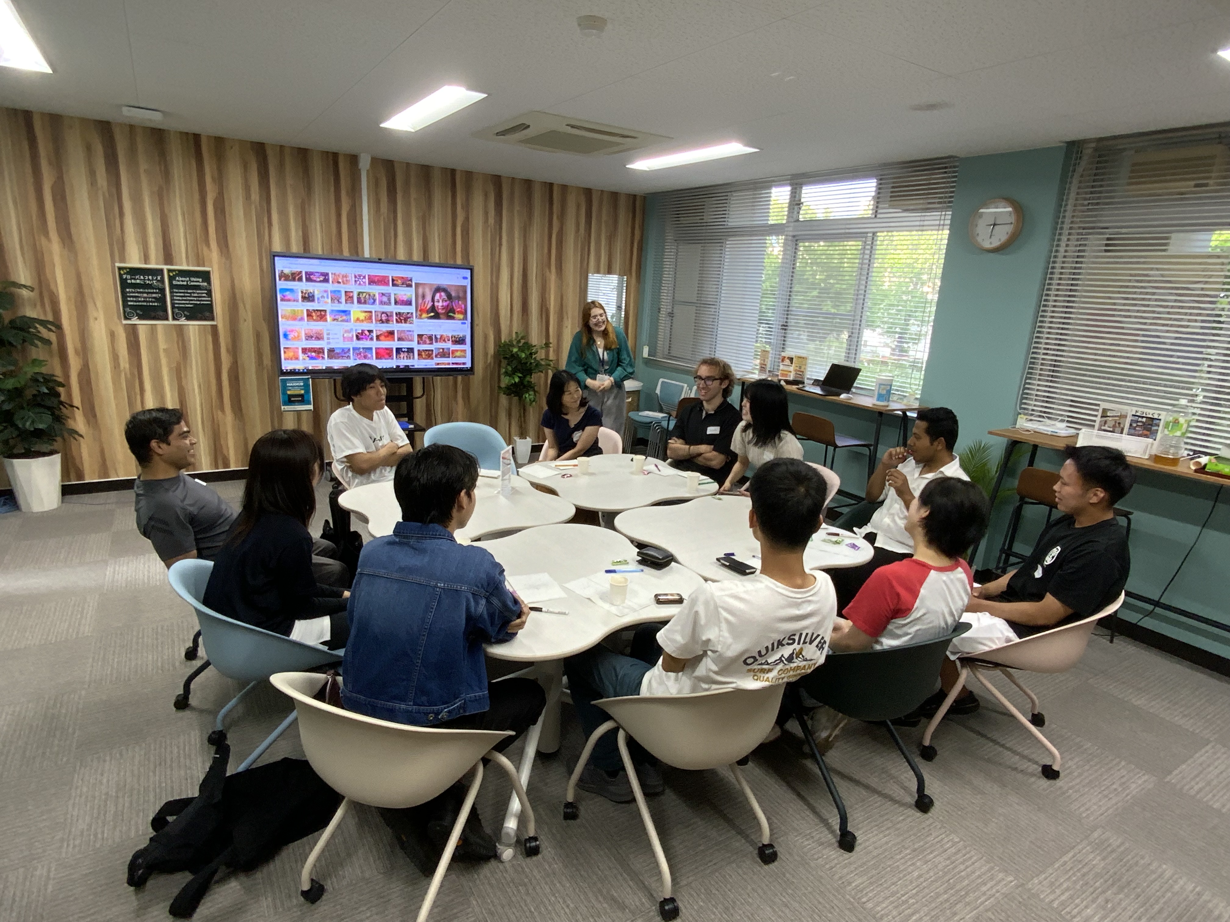 今月のテーマは「お祭り」でした。参加者の皆さんには、それぞれの出身地や国のお祭りを紹介していただき、どんな特徴があるのか、いつ開催されるのか、そしてそのイベントで楽しまれている食べ物などを教えてもらいました。日本の学生の中には、日本国内でも知らなかったお祭りを発見した方もいました。皆さんにとって興味深く、楽しい時間になっていれば嬉しいです😊