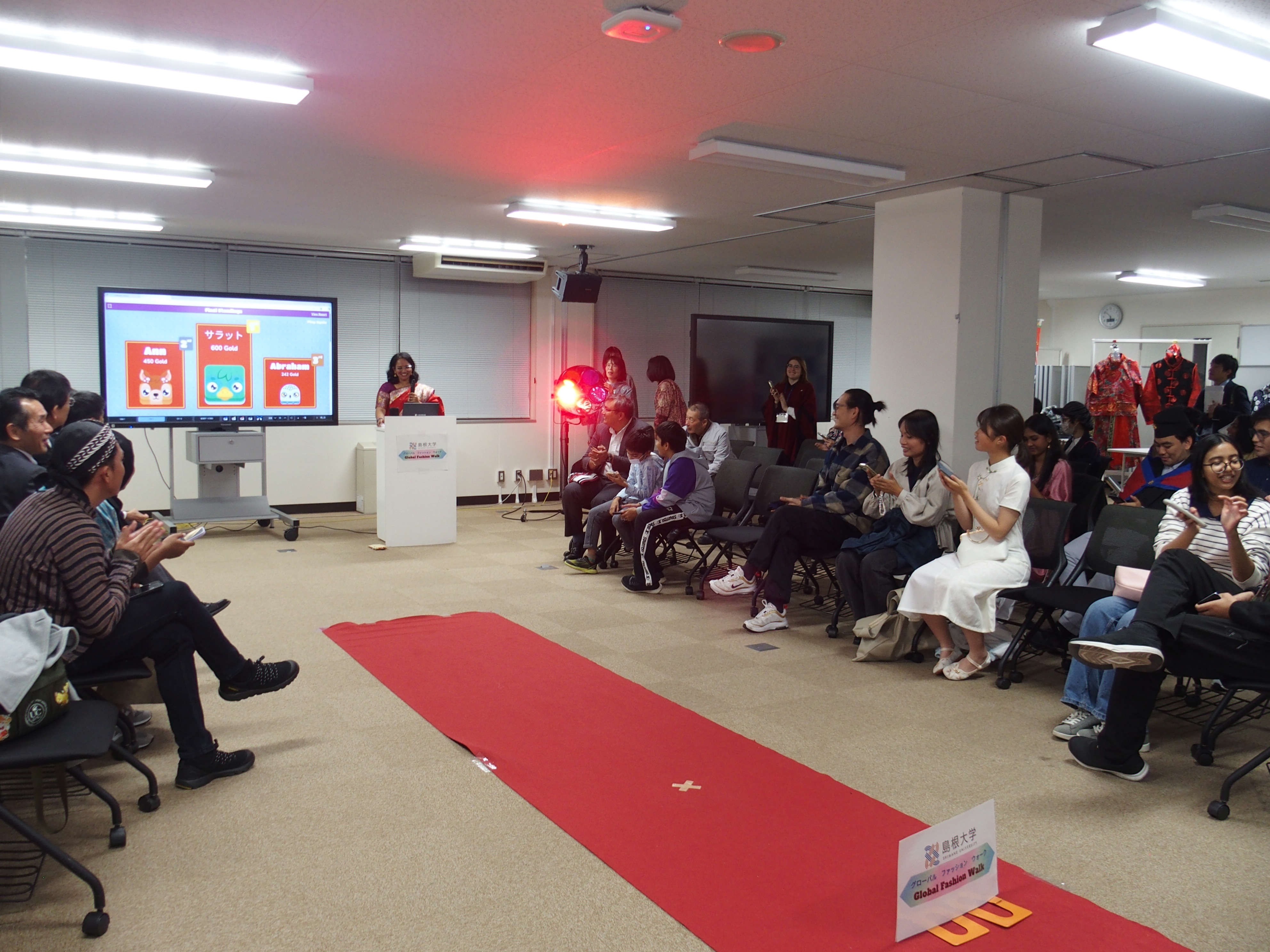 The atmosphere was warm and celebratory, with participants encouraging one another throughout the fashion walk. Many shared that they discovered new and interesting aspects of other cultures. Through traditional clothing, language sharing, displays, and interactive activities, the Global Fashion Walk became a memorable celebration of diversity and highlighted the cultural richness of Shimane University.
