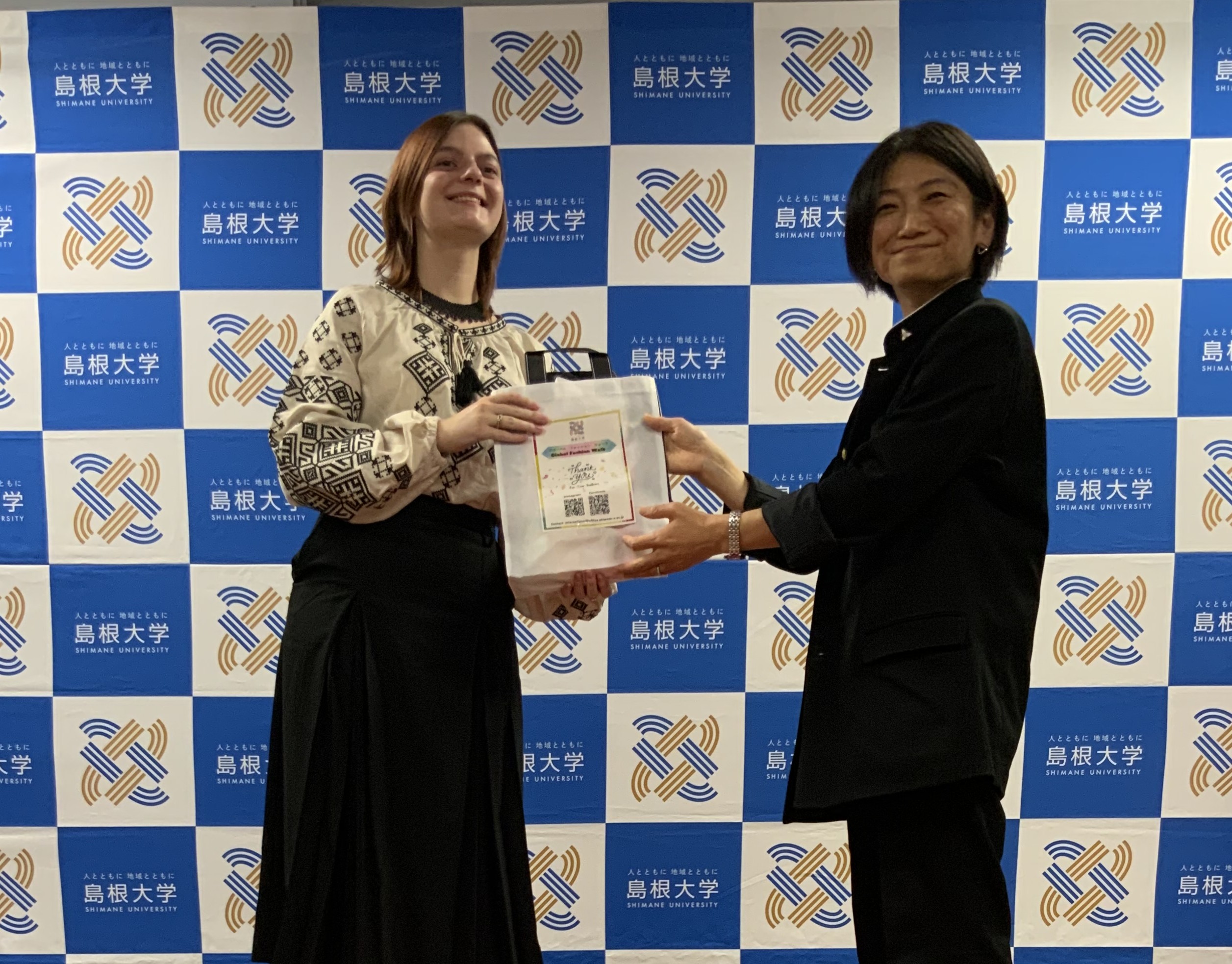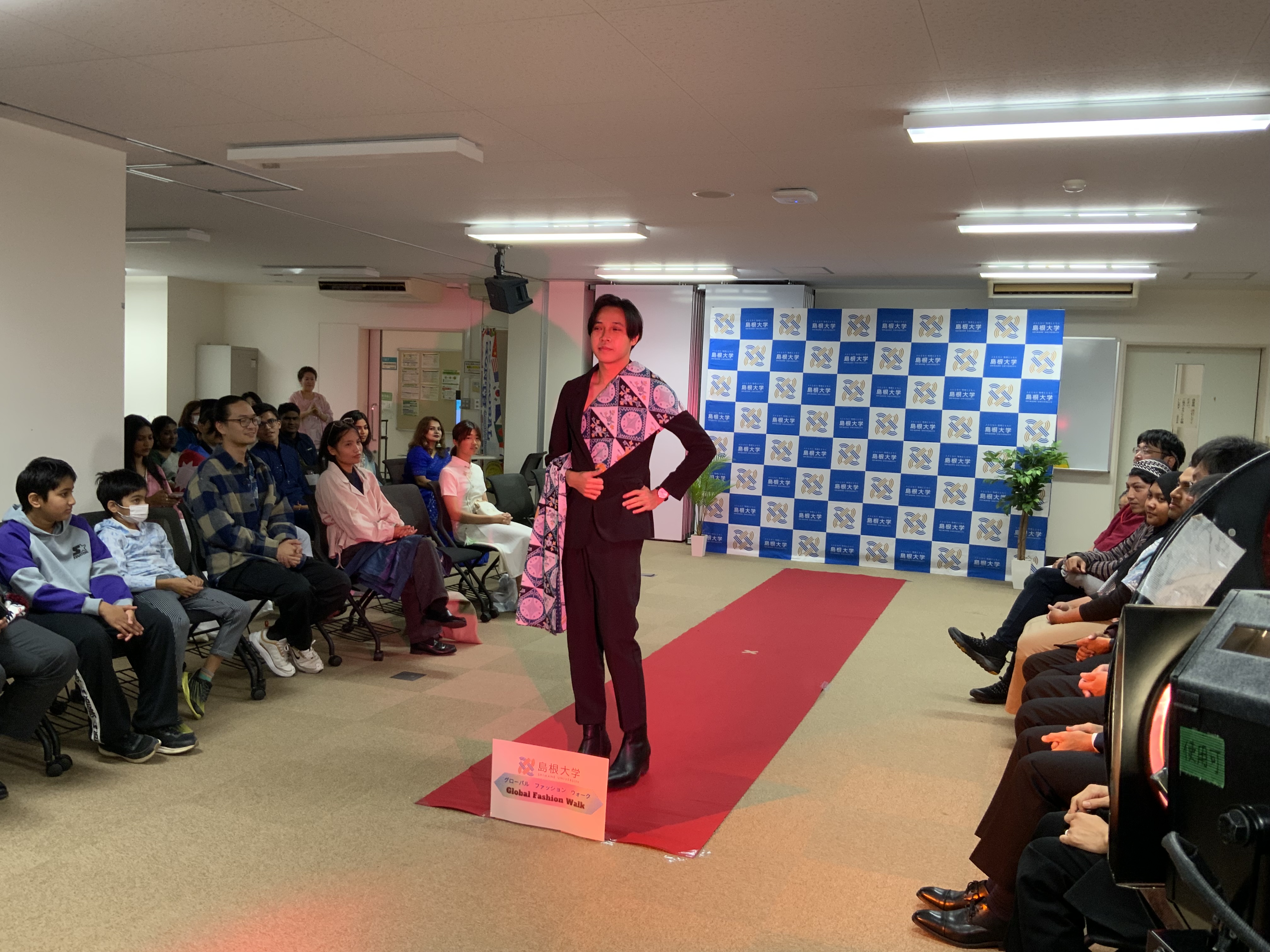 Shimane University hosted the Global Fashion Walk on November 21, 2025, as part of its annual “Global Month” initiatives. The event brought together approximately 60 participants, including Japanese students, international students, faculty and staff members, and members of the general public. Models from 9 countries (Ukraine, Nepal, Colombia, France, Indonesia, Argentina, India, Bangladesh and Japan) gathered to share their cultures and strengthen international understanding through traditional attire, multilingual greetings, and interactive activities.