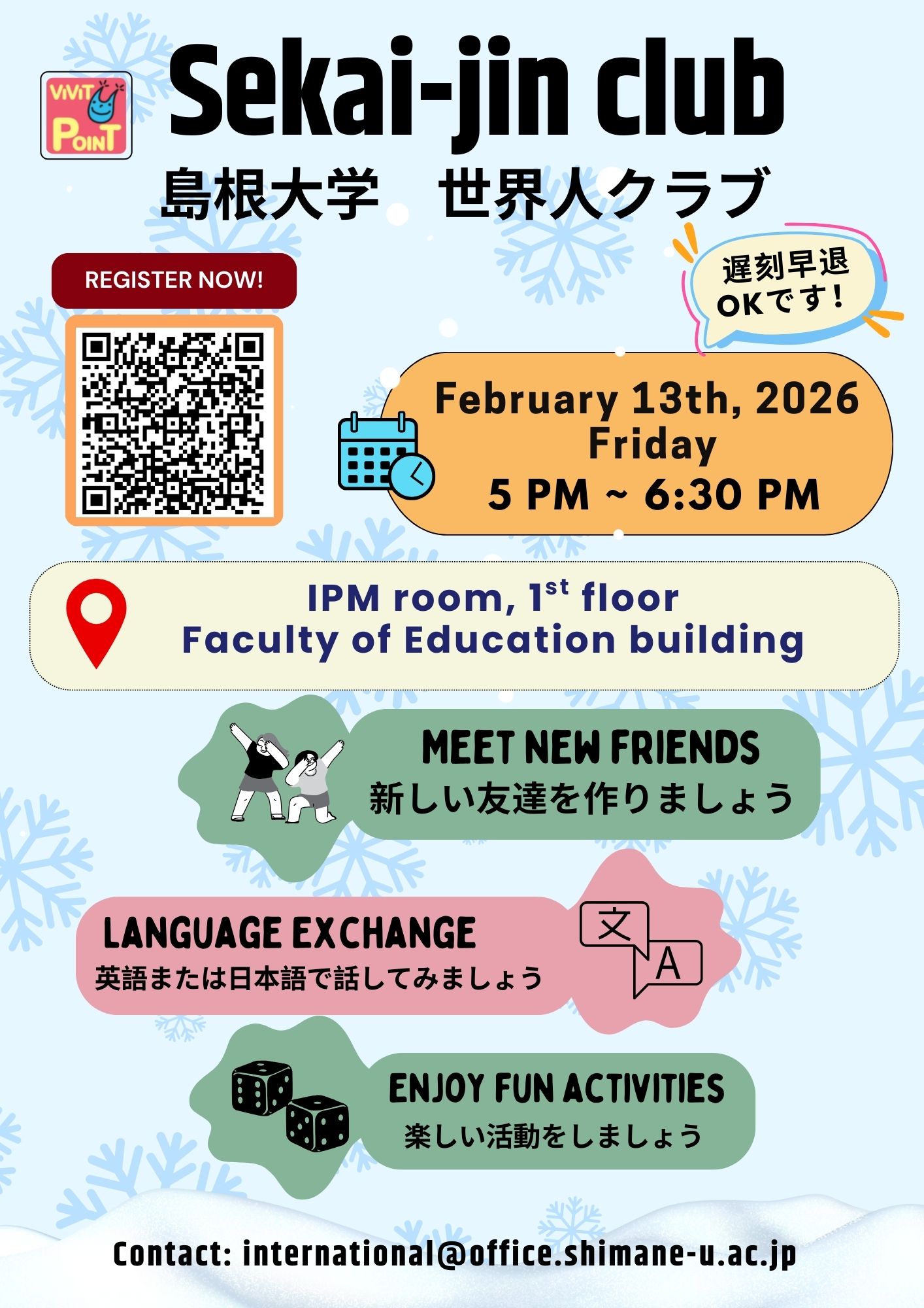 島根大学世界人クラブ 2月13日 Sekai-jin Club- February 13th – Fill out form